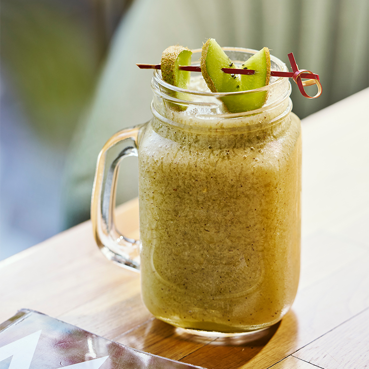 Alma meyvə suyu, kivi püresi, kivi, buz.Həcm